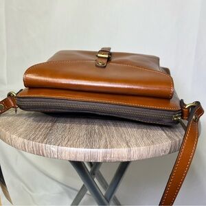Patricia Nash 100% Leather Avellino Crossbody Organizer Bag Purse Boho Tan