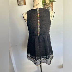Hem & Thread by Anthro blouse black lace coquette floral print ballet romantic cottage core lightweight