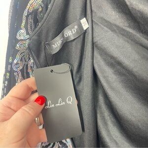 Miss Ord Long Sleeve Black Silver Sequin Mini Dress Sz Medium NWT
