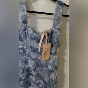Charming sky blue dress with 3D floral design. Ideal for standout moments.