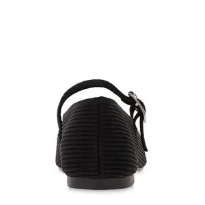 Step out in style with these elegant black Mary Jane flats. Perfect for any occasion, these shoes offer both comfort and sophistication. An adjustable strap tops this classic mary jane flat wrapped in ribbed knit and shaped by an almond toe