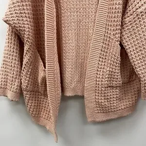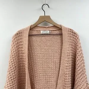 Stay cozy and stylish with this pink knit cardigan sweater. Perfect for layering, it adds a touch of elegance to any outfit.