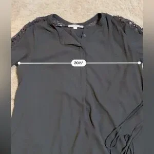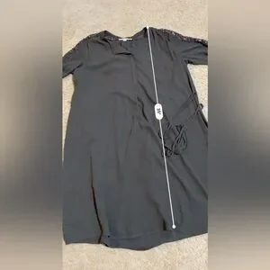Long sleeve crocheted sleeve Henley button from tie waist dress. EUC super cute with leggings and heels- see pics for approximate measurments