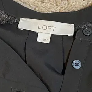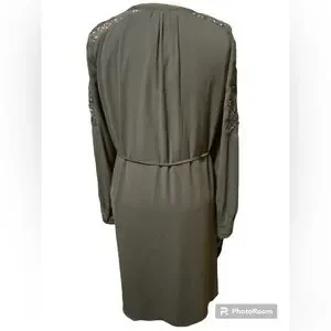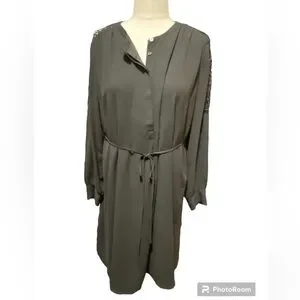 Loft Gray Crochet Long Sleeve Tie Waist Henley Dress Size L
