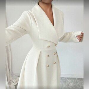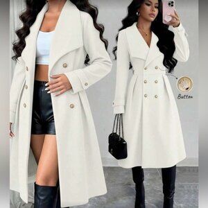Stay stylish and warm with this elegant white double-breasted coat. Perfect for any occasion, this coat adds a touch of sophistication to your wardrobe. 100% polyester