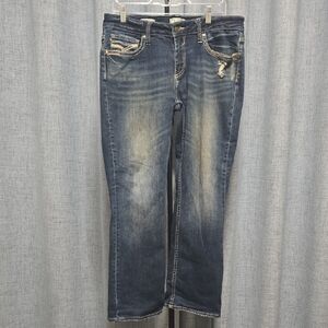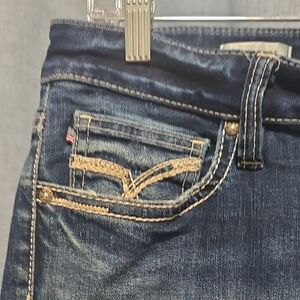 Vigoss Women's Slim Boot Cut Jeans in Faded Distressed Blue Size 14