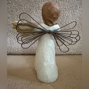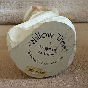This 2001 Willow Tree Angel of Autumn figurine is a beautiful addition to any home decor. The delicate angel holds a sheaf of wheat, symbolizing the harvest season. Crafted from resin with a unique, textured finish, this figurine is a timeless piece that evokes feelings of peace and serenity. A perfect gift for yourself or a loved one, this Willow Tree figurine is sure to be cherished for years to come. Very good preowned condition.