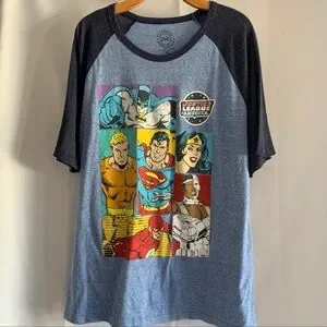 Justice League America on heathered light blue with darker blue "in sleeves" styling.