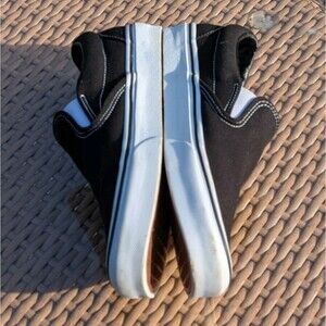 Step out in style with Vans Women's Black Slip-On Shoes. Perfect for casual outings, these shoes offer comfort and a sleek look.