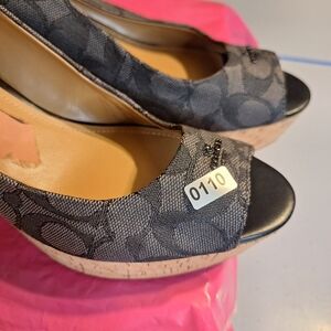 Coach Ferry Signature Black and Tan Women's Wedges Shoes. Size 9.5