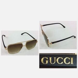 Stylish Gucci sunglasses with gold frames and brown lenses. Perfect for a chic look.