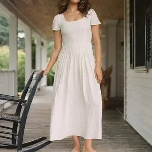 Christy Dawn dress, The Scarlet Dress, eggshell white maxi dress, white dress, linen dress, rayon dress, upcycled rayon, sustainable fashion, eco friendly dress, ethical fashion, cottagecore maxi dress, boho maxi dress, vintage inspired dress, 90s style dress, butterfly sleeve dress, pleated maxi dress, romantic white dress, summer dress, made in the USA