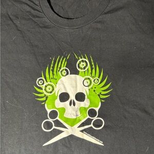 Stylish black t-shirt featuring a bold graphic design with green accents. Perfect for casual wear.