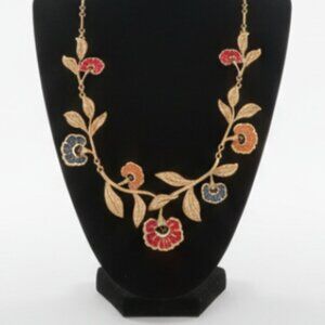 Statement necklace. Gold-tone botanical/floral necklace with red and blue enamel detailing. Stunning.