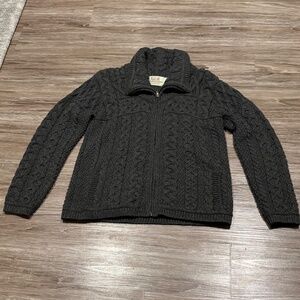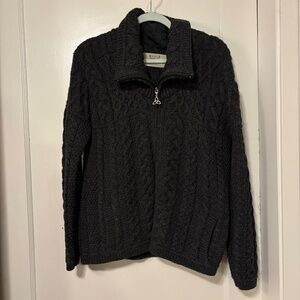 ARAN Double Collar Zip Merino Cardigan Charcoal Gray, Sz M