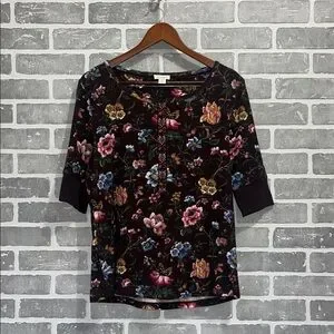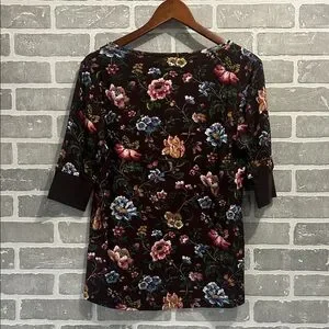 Sundance Dark Floralā 3/4 Sleeve Thermal Womens Size Medium Top