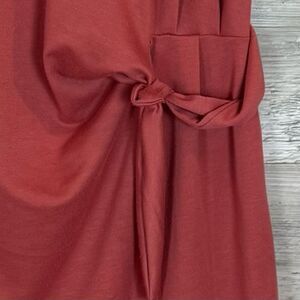Elegant terracotta midi dress with side bow detail. Soft and comfortable. Ideal for everyday wear.