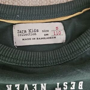 Zara Kids forest green long sleeve tee with bold yellow and white stripe accents. Features a unique graphic design. In good condition - please see photos.