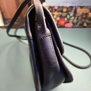 1994 Vintage, hard to find Coach Megan Bag in black. Made in the USA. This gorgeous 1994 Coach is a unique geometric crossbody with a front snap closure. Measures 7.5"x7.75"x2.75" with a 22" drop strap. Slip pocket on the back for easy access of things like your keys or ID. Small zip pocket inside with original brass zipper and hardware. Coach creed stamped on the inside of the bag. No hang tag.