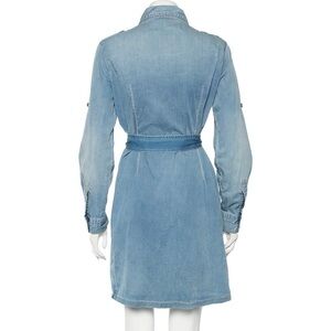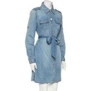 The fine artistry and the feminine silhouette of the dress exhibit Tory Burch's years of impeccable craftsmanship in tailoring. The dress is made from denim fabric in a blue shade in a shirt style. The creation comes with a belt that can be used to cinch the waist for a defined fit.