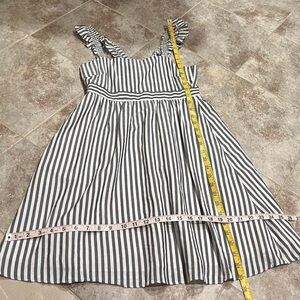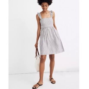 NWT Madewell Striped Ruffle Strap Empire Waist Mini Dress Gray White Size 0