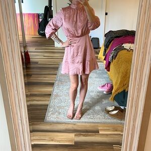 Super cute and flattering! Just needs a good steaming and she’s ready! The mauve rose color is perfection! Size is small, fits TTS.