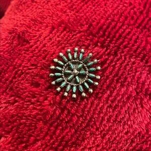 Zuni Sterling Silver Needle Point Turquoise Brooch Pin.
