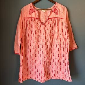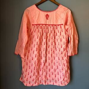 EUC size women’s XS tunic coverup in peony (pink) by Pink Chicken. Embroidered all over with red for a cute tonal look. Style name is Jade