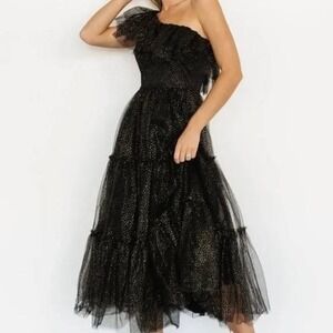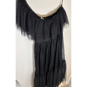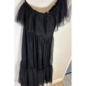 Flying Tomato Black Tulle Off Shoulder Midi Dress Ruffle Tiered Party Sz Medium