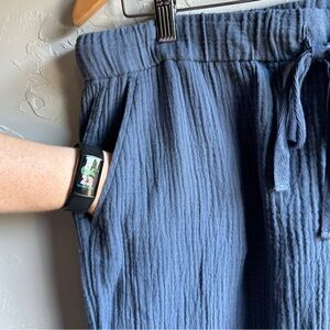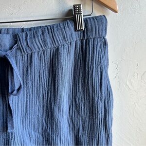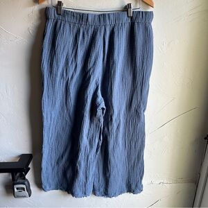 Eileen Fisher Blue Organic Cotton Gauze Wide-Leg Pant Cropped Sz L 22” Inseam