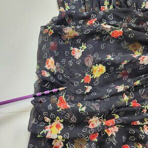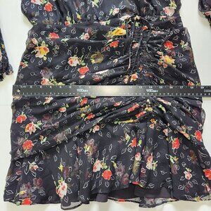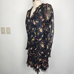 Veronica Beard Black Floral Armeria Dress 10 Chiffon Ruched Sheer Long Sleeve
