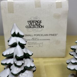 Department 56 set of 2 Village Small Porcelain Pine Trees 5" 4" 5251-1 With Box