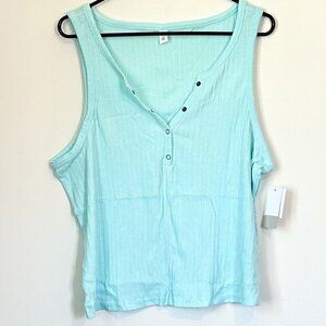 NWT BP by Nordstrom Textured Henley Tank Top in Teal Paradise - 3X