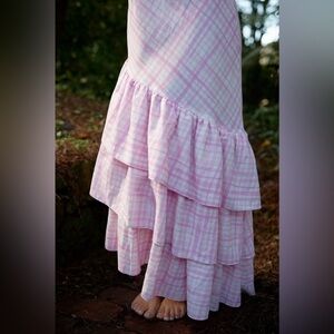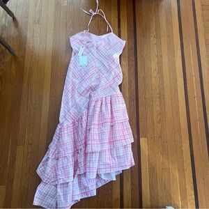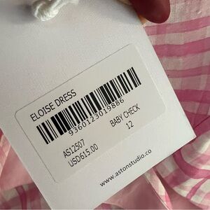 NWT Aston Studio ELOUISE DRESS IN BABY CHECK pink ruffle linen blend $615 US 8