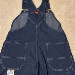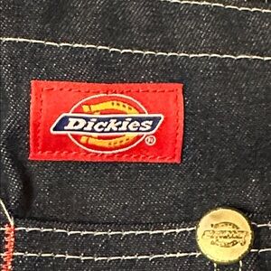 Dickies Stylish and durable men's dark blue denim overalls. Perfect for casual wear or work. Features sturdy construction and classic design. Size 40x30