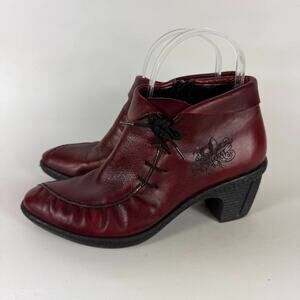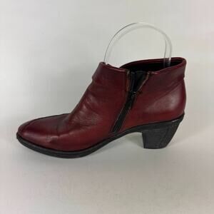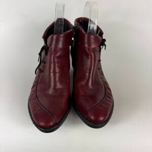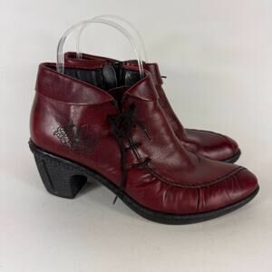 Rieker Rebecca Boots Women's 6.5 Burgundy Leather Pull On Block Heel Side Zip