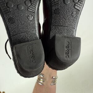 Reiker size chart states these will fit a 6 to 6.5. ElevStep into the season with the Rieker Rebecca Boots, a perfect blend of style and comfort for the modern woman. Crafted with high-quality leather in a rich burgundy hue, these boots feature an almond toe design and a practical low block heel measuring between 1 to 1.9 inches, ideal for day-long wear. The durable rubber outsole provides excellent traction, making them suitable for a variety of settings, from workwear to casual outings and travel adventures. The boots boast a versatile ankle shaft style with a convenient side zipper closure for easy on and off. Elegant accents such as the Rieker logo, lace detailing, and a sleek zipper add a touch of sophistication to these booties. With a standard shoe width and available in US size 6.5, UK size 4.5, and EU size 37, the Rieker Rebecca Boots are designed to fit beautifully into any wardrobe, ready to complement your outdoor themes and seasonal transitions.