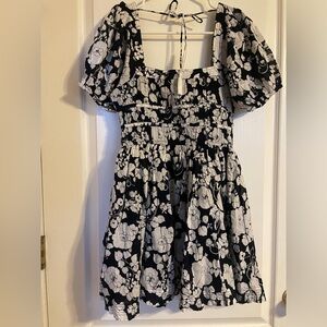 NWT AE77 American Eagle Premium Organic Cotton Floral Puff Sleeve Mini Dress XS