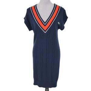 Lacoste Sport Sweater Dress Women's 6 US 36 EU Navy Blue Cable Knit Orange Trim Nautical Preppy