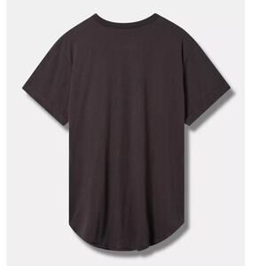 Rounded hemline; short cuffed sleeves