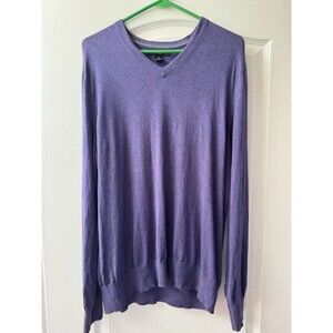 The Banana Republic Luxury Blend V Neck Long Sleeve Sweater in Men's XL size is a high-quality pullover designed for casual occasions during the winter, fall, and spring seasons. The sweater features a solid purple color and a tight-knit fabric made of silk, cashmere, and cotton blend materials. It has a classic V-neckline and long sleeves, making it a stylish and comfortable choice for men looking for designer clothing. Made in South Korea, this sweater is a versatile and wardrobe essential from a reputable brand like Banana Republic.