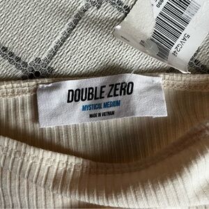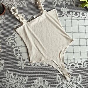 NWT Cream Ribbed Thong Bodysuit with Ruffle Straps