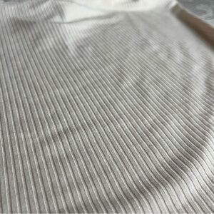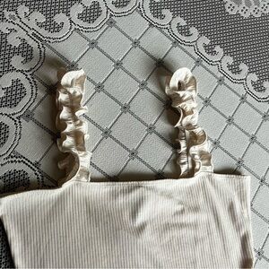 NWT cream ribbed thong bodysuit featuring ruffle straps. Snap closure at crotch