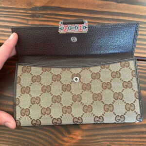 Gucci GG Supreme Sherry Brown Canvas Leather Long Wallet