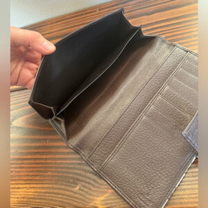 Gucci GG Supreme Sherry Brown Canvas Leather Long Wallet in excellent used condition.