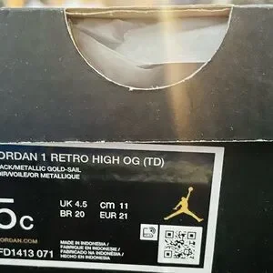 JORDAN 1 RETRO HIGH OG (TD) 5c BLACK/METALLIC GOLD-SAIL NOIR/VOILE/OR METALLIQUE