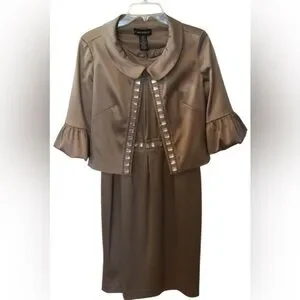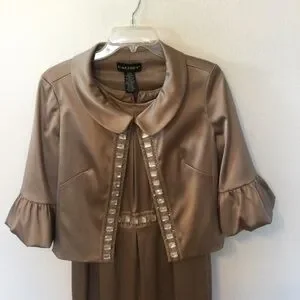 Cachet Beautiful Camel Mother of The Bride Party Holiday Jacket Dress Size 8