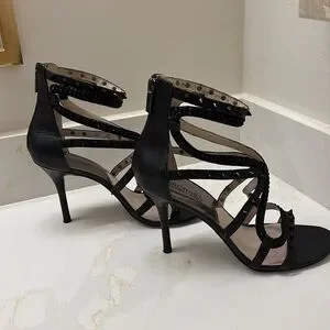 Michael Kors size 8 Larissa studs and jewels strappy heels. Leather and suade straps, elegant yet modern and comfortable. Zipper on back. Used in excellent condition/ wear noticeable on soles. Please refer to pictures.