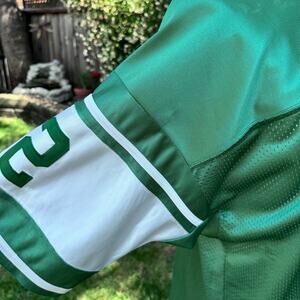 Mitchell & Ness Throwback 1968 New York Jets Joe Namath Jersey Size 54. In good preowned condition. Has some light pilling and snagging here and there. Has a some spots on the numbers. Measurements are approximate taken flat. Please see photos that show pit to pit as I measured higher and lower do to design cut