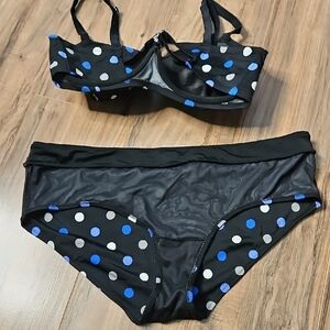 🌾Polka Dot Plus Size Bikini - Black and Blue NWOT
